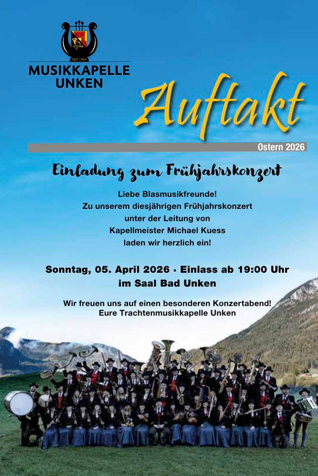 auf der Homepage der Trachtenmusikkapelle Unken. Hier findet ihr neben Terminen und Kontaktmöglichkeiten aktuelle Informationen über das Vereinsleben, sowie interessante Fakten und Stationen in der mittlerweile 150 jährigen Geschichte der Musikkapelle Unken.